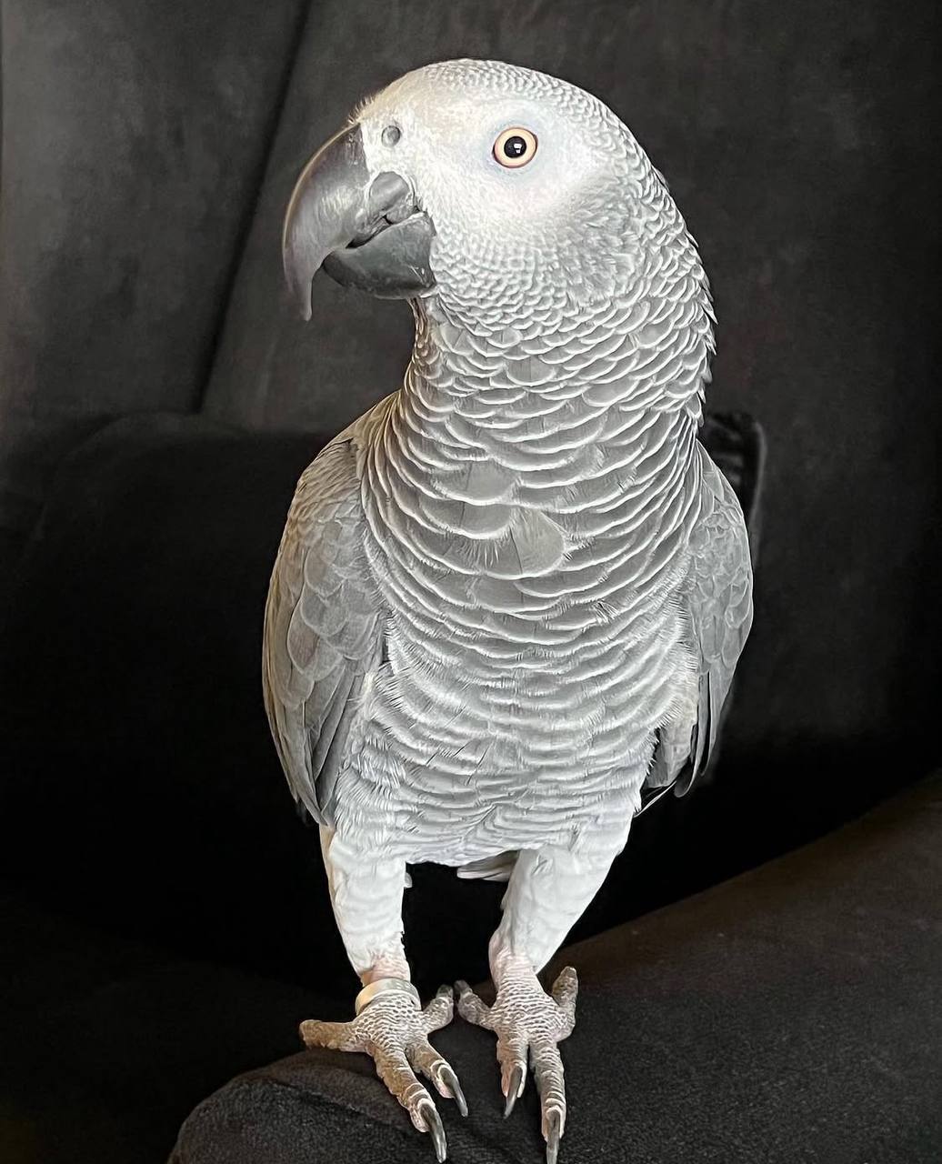 Introducing our magnificent African Grey Parrot, a bird celebrated for its intelligence and captivating personality! Native to the lush rainforests of West and Central Africa, these stunning parrots are known for their striking grey plumage and vibrant red tail feathers.