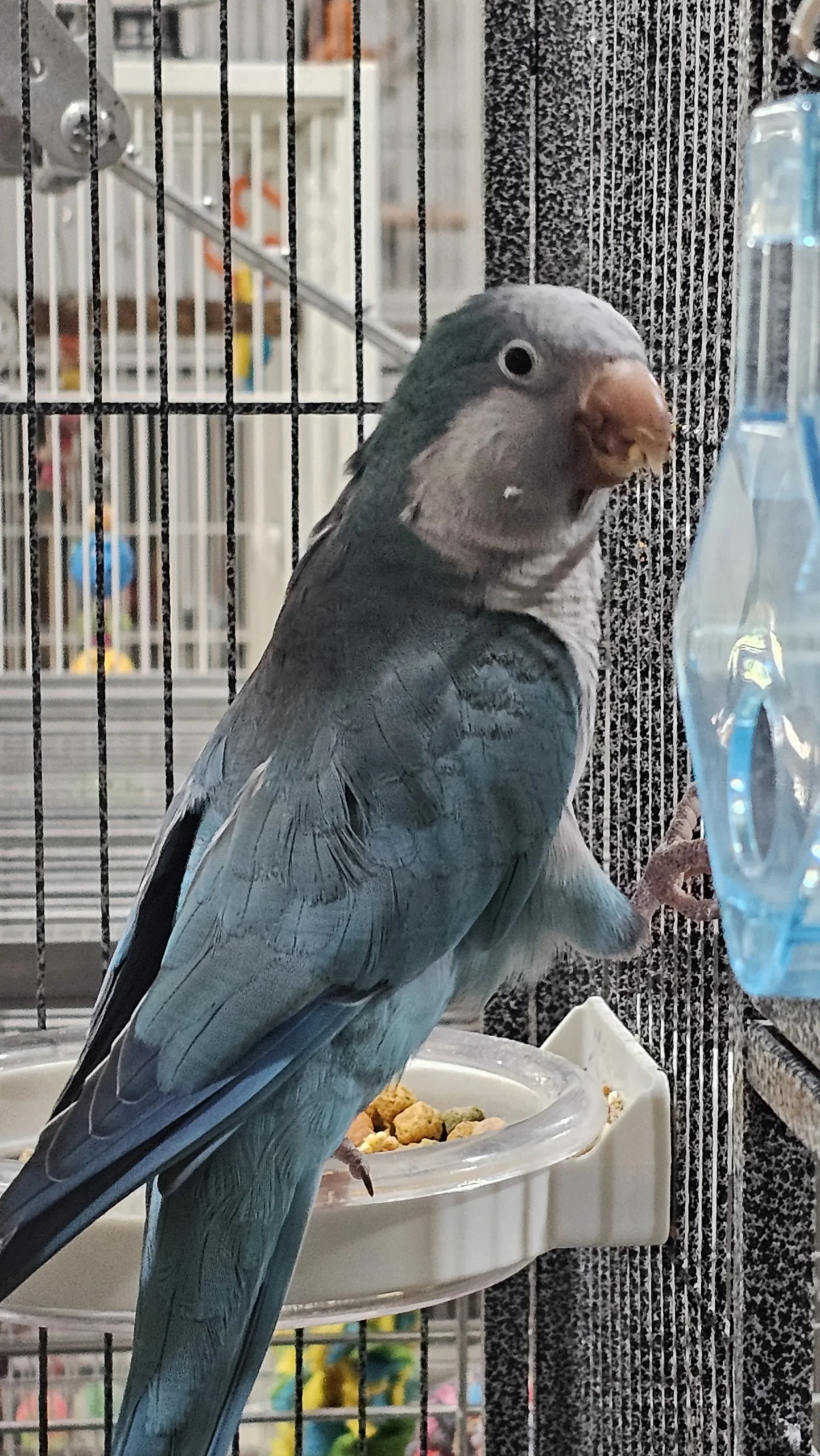 Jalapeño is a little blue Quaker parrot with a spicy personality! He came to us from a seizure situation, so we don’t know much about his background or whether he’s male or female. We also don’t know how old Jalapeño is.